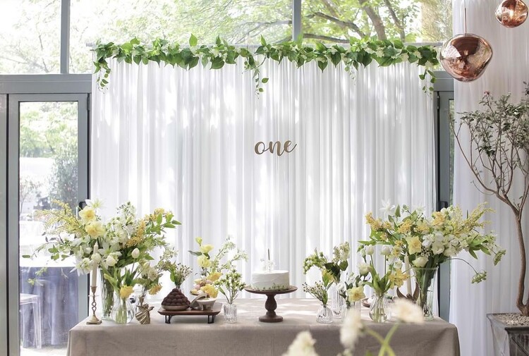 테이블 / 테이블보 / 커튼 배경 / 조화 장식