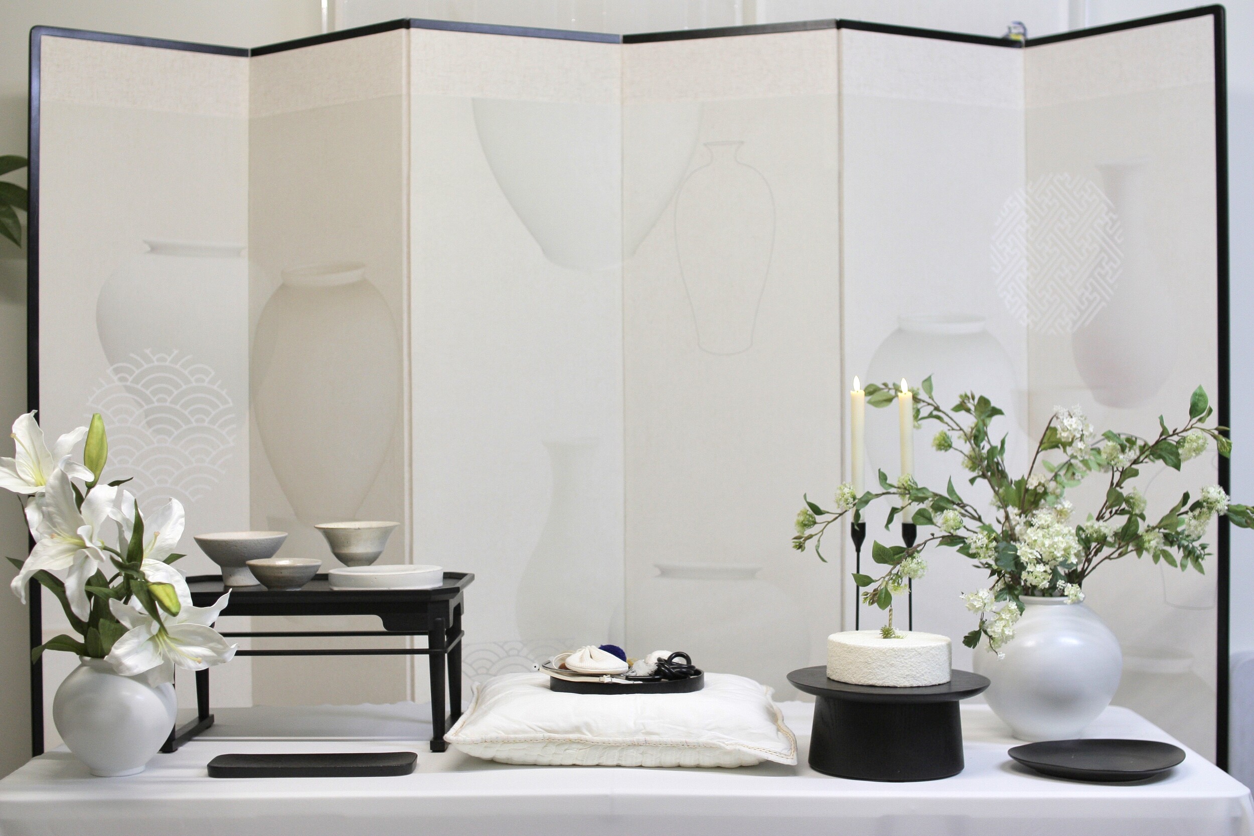 소반이 블랙, 화병이 도자기 달항아리로 변경됩니다.