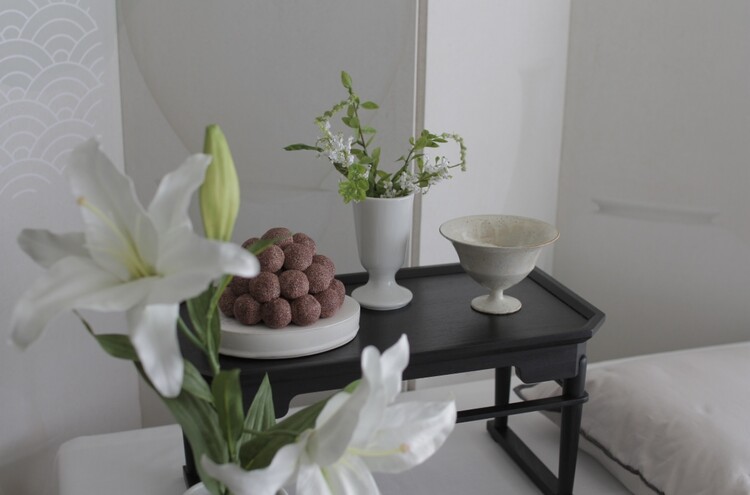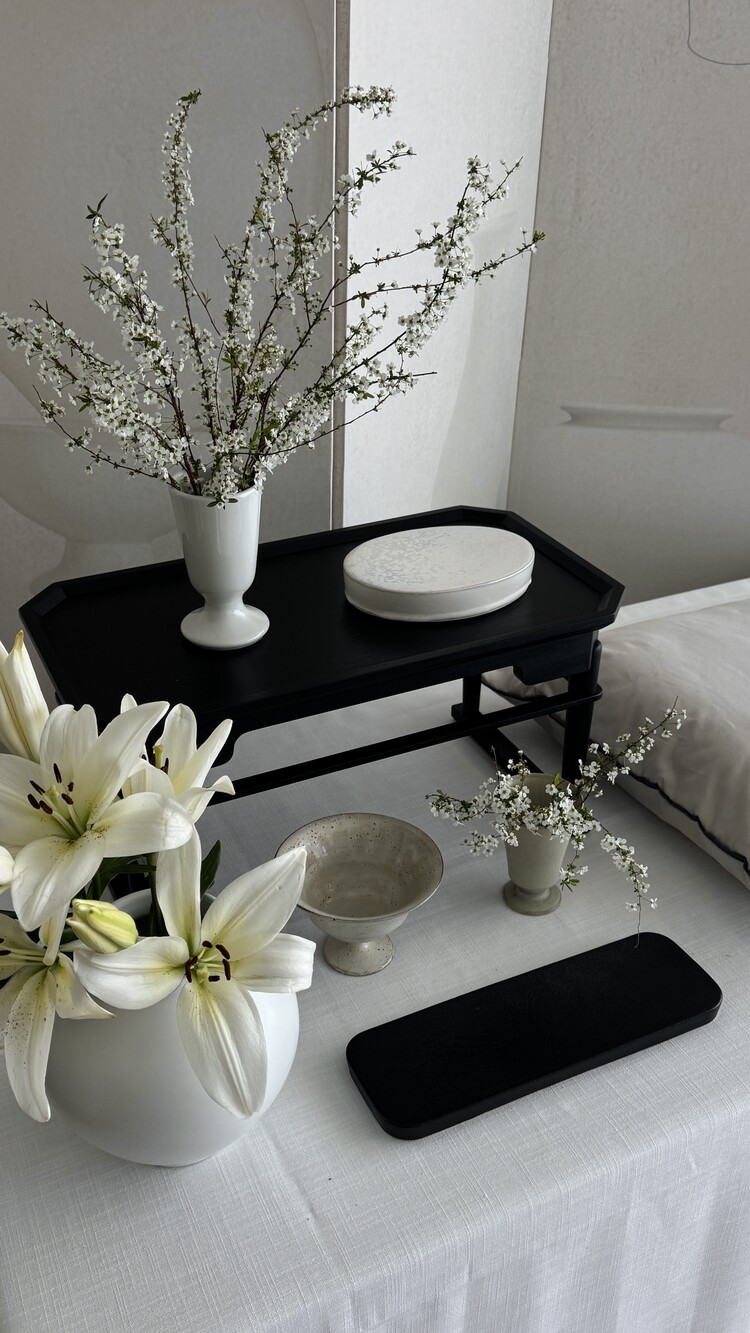 테이블 / 테이블보 / 커튼 배경 / 조화 장식