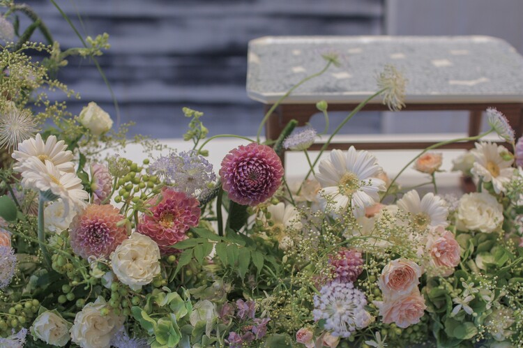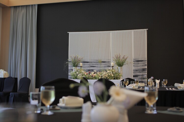 테이블 / 테이블보 / 커튼 배경 / 조화 장식