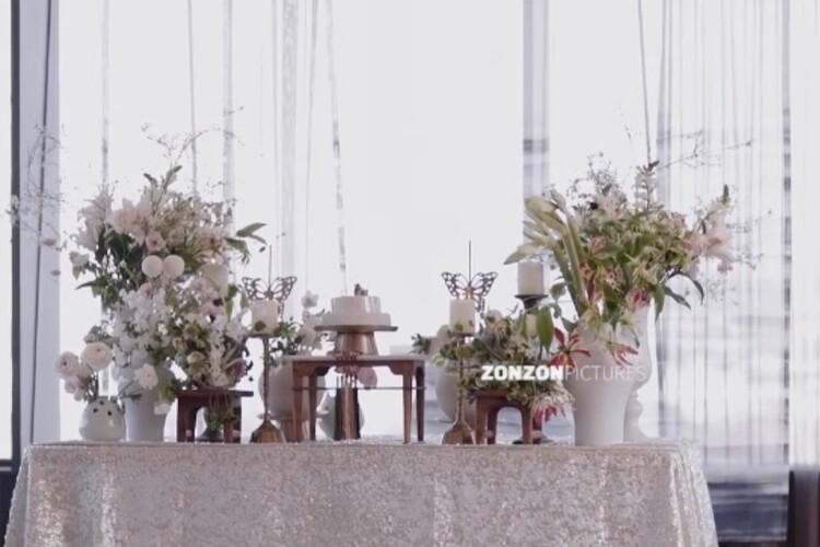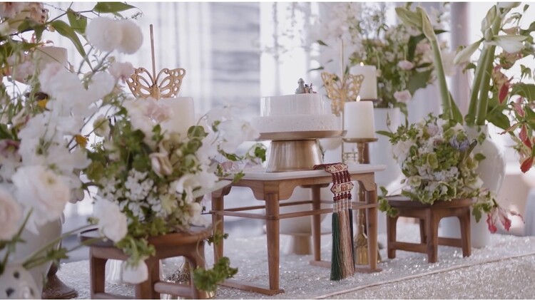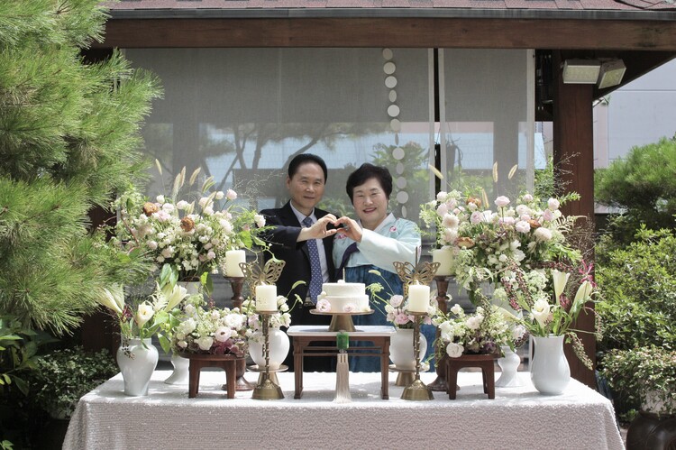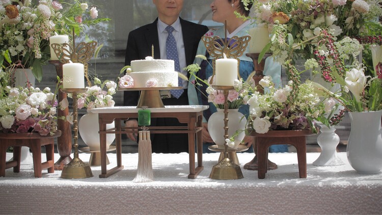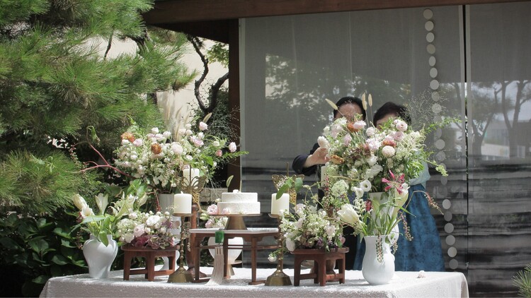 테이블 / 테이블보 / 커튼 배경 / 조화 장식